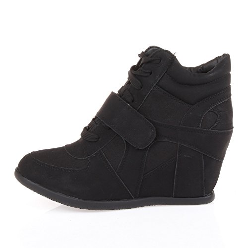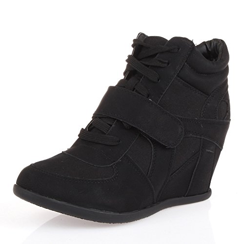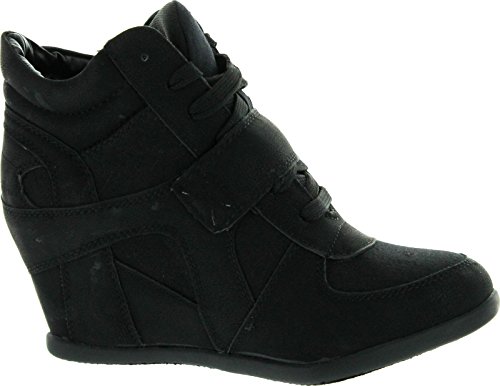 Top Moda Womens Sammy-40 High Top Strap Womens Hidden Wedge Sneaker Shoes