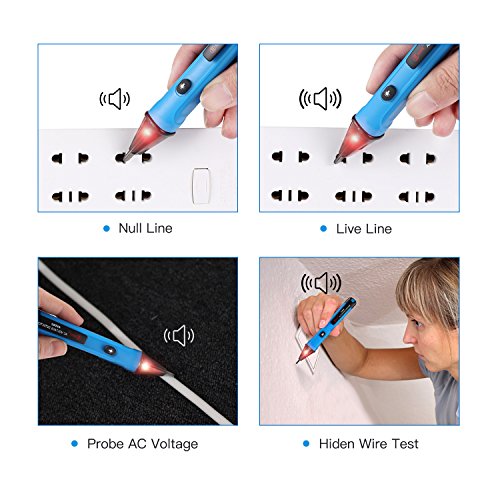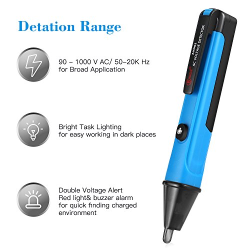 - SAFELY SOUND&LIGHT ALARM: It will flash and beep when the device close to AC voltage greater during the specified voltage range without touch the measured object, and also with the beep sound and LED to indicate to support enough safety measuring application