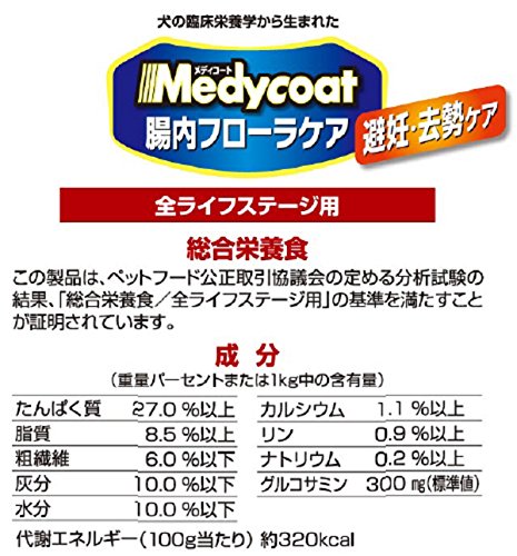 素材構成:たんぱく質27%以上、脂質8.5%以上、繊維6%以下、灰分10%以下、水分10%以下、カルシウム1.1%以上、リン0.9%以上、ナトリウム0.2%以上、グルコサミン300mg標準値、約320kcal/100g