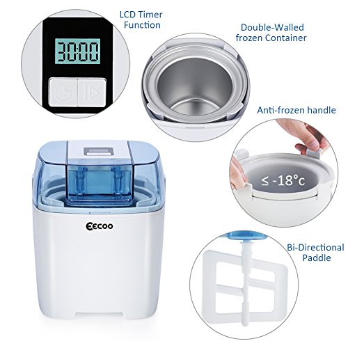 【LDC Countdown and Mixing Paddles LCD Countdown-Timer, EECOO ice cream machine sanitizer can be automatically set making time by press the button on the lid. 20-minute countdown timer with touchpad controls and a blue LCD readout .the mixing paddle aerate the ingredients in the mixing bowl to create your frozen dessert