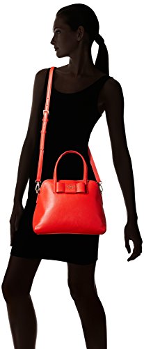 Top-handle satchel in pebbled leather featuring dimensional bow topped with hardware logo