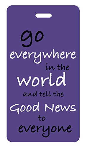 Product Description Christian themed luggage tags made of durable acrylic. A removable ID information card is in the clear window on the tag back. Each tag comes with a vinyl loop to attach the tag to your bag. Tag Size is 4.25 inches X 2.25 inches. Brightly colored with inspirational quotes perfect gifts for church groups. 0