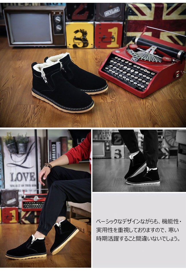 | 商品名 | 裏起毛ブーツ ショートブーツ スノーブーツ メンズ 防寒靴 フェイクスエード ファスナー付き カジュアルブーツ レースアップ 滑り防止 暖かい 2017秋冬新作 |