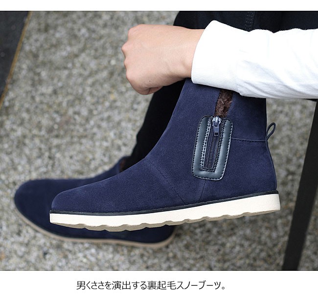 男くささを演出する裏起毛スノーブーツ。