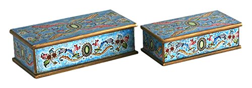 NOVICA Decorative Wood Reverse Painted Glass Box, Blue, 'Emerald'