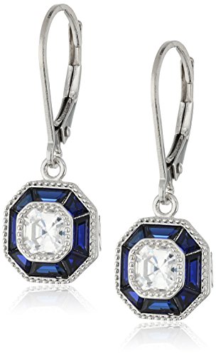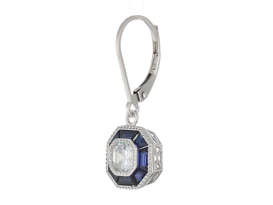 Platinum-Plated Sterling Silver Swarovski Zirconia Clear Asscher Baguette Created Sapphire Leverback Earrings