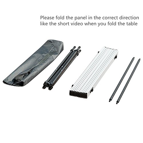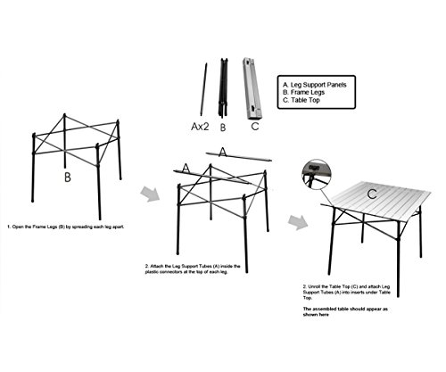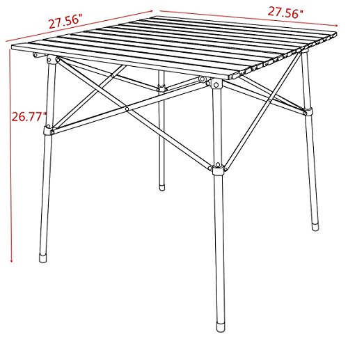 Product Description: Timber Ridge folding table is a portable, ultra light and easy assemble camping table with its new functional design of side mesh storage bag. You can take this table anywhere with the carry bag (included). The bag is divided into two parts - one side is for the table legs and frame support pieces, while the other side holds the rolled up top. The divider design makes the parts of the table in order. With a light weight, this table features convenient and easy to store. The durable aluminum top makes the table suitable for any environment such like the beach, park, and other outdoor activities. Technical Specification: Brand Name: TimberRidge TRTBL002SI/TRTBL002SIM Unfold Size: 27.56 x 27.56 x 26.77 inches Table Top Material: Aluminum Frame Material: Steel Package Weight: 9.4 pounds Colors Available: White Cleaning and Maintenance: 1.Wipe off the sediment with dry rag,water scrubbing and detergent cleaning not suggest. 2.In order to avoid seat faded, please do not put outside under heavy raining or blazing sun for a long time. 3.Store away after drying when not in use. 4.Do not leave in the elements, as the metal parts may rust. 5.Check stability regularly. Screws may loosen and need to be tightened. 6.Folding should in a correct direction according to the following video. About Timber Ridge: Timber Ridge is a professional outdoor brand which devotes to provide best outdoor experience for customers. Our products cover different fields on outdoor activities including chairs,wagons,tents,tables etc. All the products are subject to multiple strict quality tests on different extreme environments before entering market. We have reasons to believe our quality products will meet all the needs on outdoor activities.