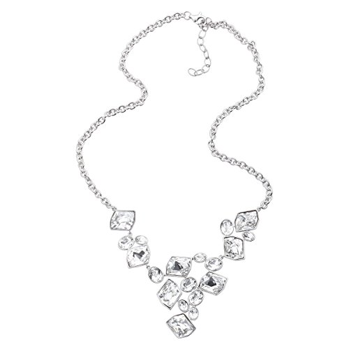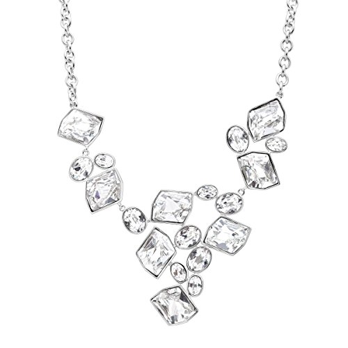 Look no further for your new go-to glam piece. Several special-cut white Swarovski crystals are clustered together in a V-shape for an unforgettable, dynamic look in tonal sterling silver. Feature piece measures 2 1/2 by 3 1/2 inches with a total length of 20 inches.Feature