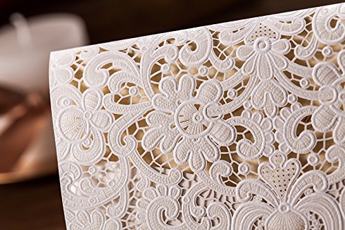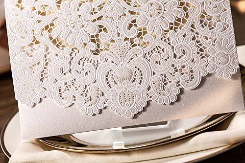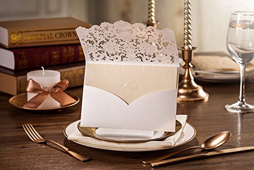 5 x 7.3 inch Ivory laser cut wedding invitation with free ivory envelopes. You can print the invitation with your own design by home printer if you are good at DIY.