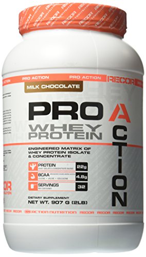 -. Binding : Health and Beauty -. Brand : Reaction Nutrition -. Color : White/Orange -. EAN : 0748252660008 -. Feature : Prevent muscle metabolism increase lean muscle mass increases recovery suppress appetite -. IsAdultProduct : 0 -. Label : Europa Sports Products -. LegalDisclaimer : WARNING: This product is intended as a dietary supplement only. Do not use as a sole source of nutrition. Consult a medical doctor before starting any diet or exercise program. Discontinue use and consult a medical doctor if you experience unusual symptoms. Do not use if packaging has been tampered with.Contains milk and soy ingredients. -. Manufacturer : Europa Sports Products -. MPN : 520800 -. NumberOfItems : 1 -. PackageQuantity : 1 -. PartNumber : 520800 -. ProductGroup : Health and Beauty -. ProductTypeName : HEALTH_PERSONAL_CARE -. PublicationDate : 2015-10-17 -. Publisher : Europa Sports Products -. ReleaseDate : 2015-10-14 -. Size : 32 servings -. Studio : Europa Sports Products -. Title : Reaction Nutrition Recor Pro Action Whey Protein, Milk Chocolate, 2 Pound -. UPC : 748252660008