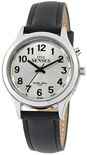 -. Feature : 2nd Generation talking watch with Time Date-Day and Alarm / With SENSES's VHAS talking watch technology / You read and hear the same time always / Clear and loud male Voice / Silver-tone watch case with bold Arabic number big Hour Minute and Second hands on a white dial