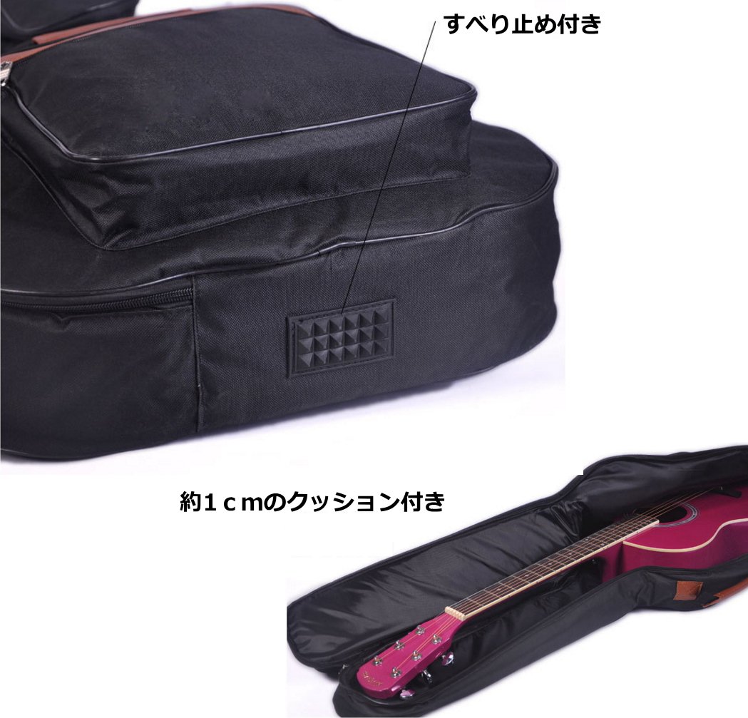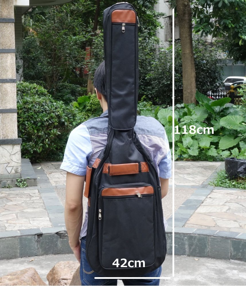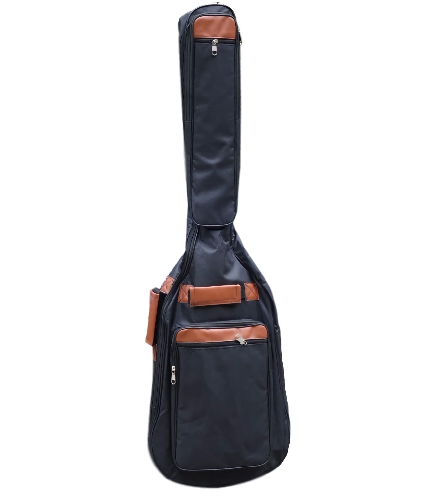 Lightweight backpack type for electric bass guitar of general size, cushioned case.