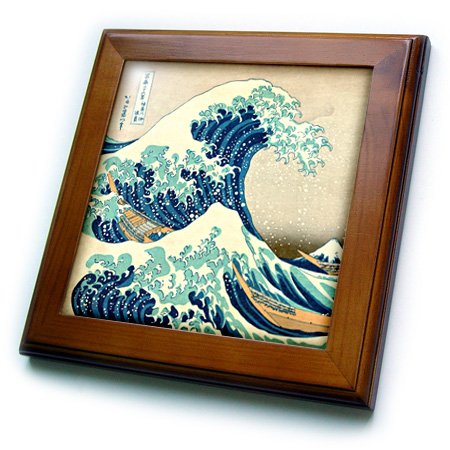 3dRose ft_155631_1 The Great Wave Off Kanagawa by Japanese Artist Hokusai Dramatic Blue Sea Ocean Ukiyo-E Print 1830 Framed Tile, 8 by 8-Inch