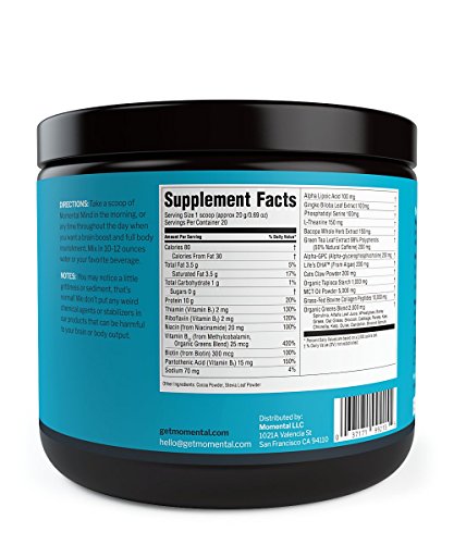 -. Title : Momental MIND Full Body Nootropic Meal Replacement Blend with Grass-Fed Collagen, MCT Oil, Organic Greens and Nootropic Blend