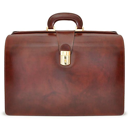 -. Feature : Personalized Custom Name Initials Embossing! This is the perfect gift idea for a loved one as a birthday, graduation, wedding, anniversary, or holiday present. Embossing Info: We only use capital letters. Aluminum die letters are heated and pressed onto the leather to blind emboss the initials. Please do not use any special characters. English alphabet only. Item non-returnable unless specified by special condition. / From the Radica Range Collection, this product is handmade in the Florence region of Italy, tanned with a special technique that uses only natural ingredients and pigmented with a lacquer to achieve the patent leather with coats the leather for protection and gives a smooth, clean and glossy finish. This flap cover leather briefcase features front lock closure / Featuring laptop compartment for screens up to 17�, one zippered pocket, two pen holders, smart phone/device sleeve and led light for prompt document retrieval / Comes with leather top handle for carrying comfort / Dimensions: 17 (L) x 6 (W) x 12.5 (H) in. Weight: 5 lbs.