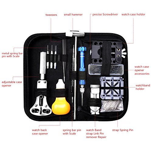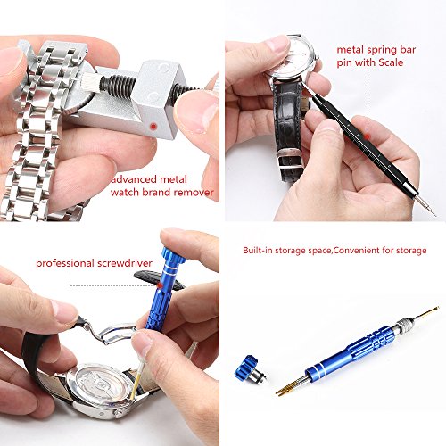 Professional and precision watch repair tool, perfect for common watch trouble, like opening watch backs, watchband adjustment, changing watch batteries, gaskets, adjusting bands, and more