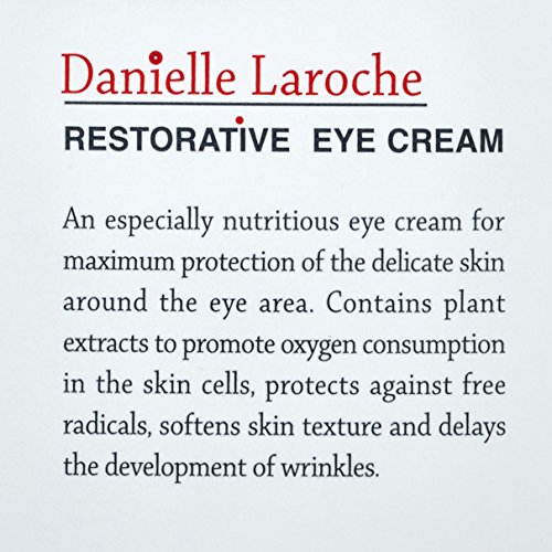 Danielle Laroche Restorative Eye Cream for All Skin Types The Magic combination of Swiss ingredients and Dead Sea minerals. An especially nutritious eye cream for maximum protection of the delicate skin around the eye area. Contains plant extracts to promote oxygen consumption in the skin cells, protects against free radicals, softens skin texture and delays the development of wrinkles. To use: Apply to a cleansed skin around the eye area with gentle patting motions until absorbed. 30ml - 1.07 oz.Feature
