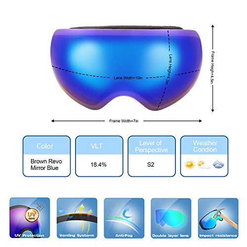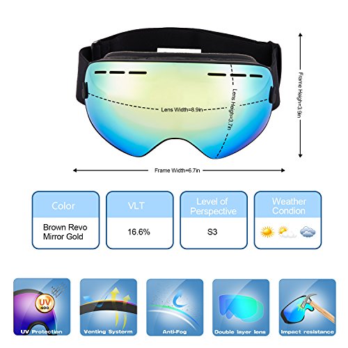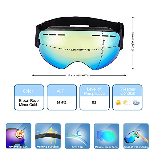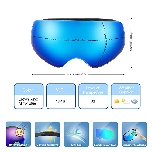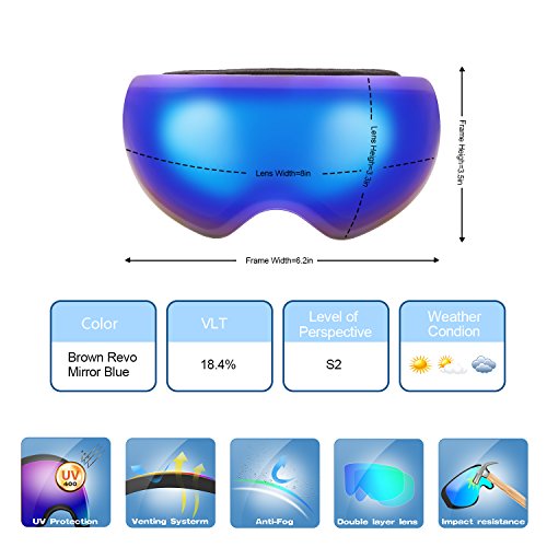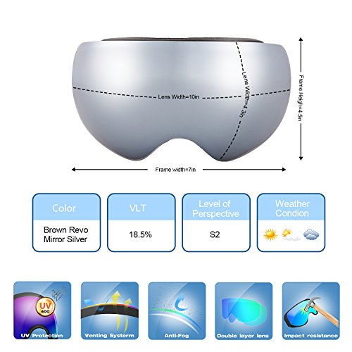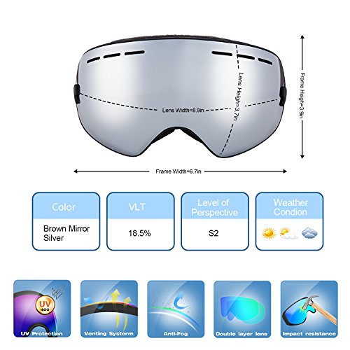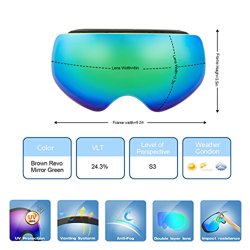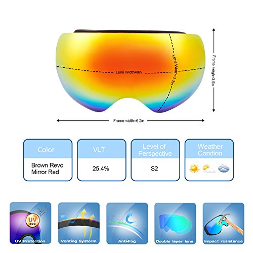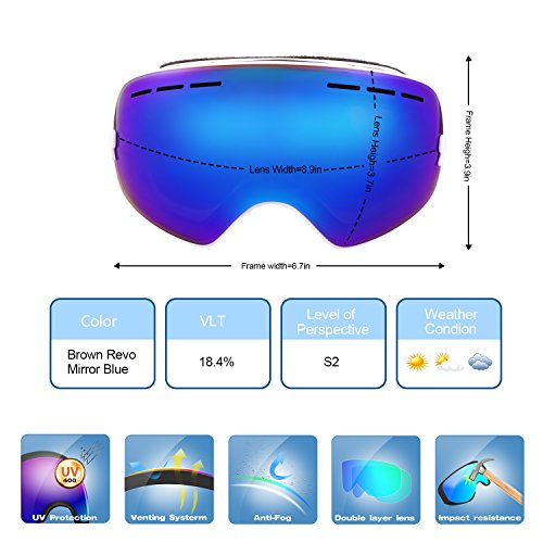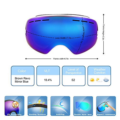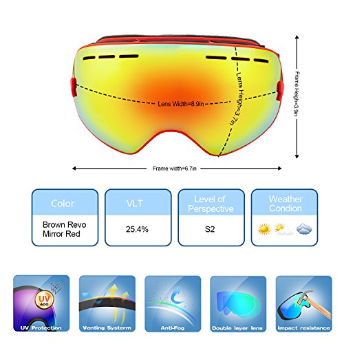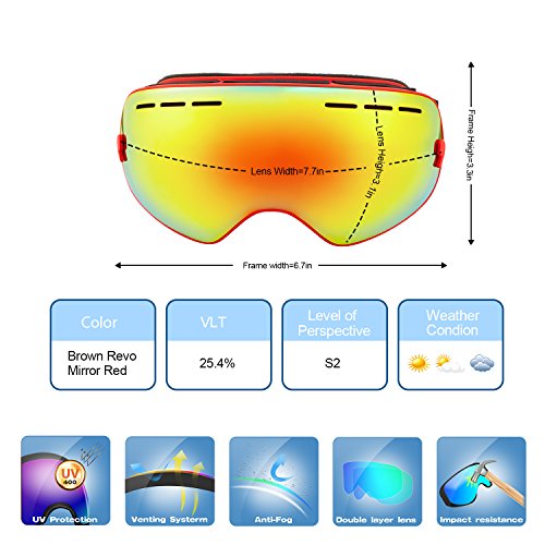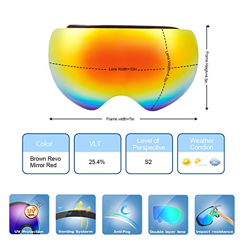 PC Outer lens with Frameless Design Light and handy, Anti-scratch, impact resistance PC can filter the ultraviolet ray, strong light.The large spherical, frameless lens provides a truly unobstructed clear view of the slopes for adult youth boys girls