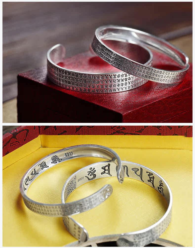【月老祠堂】禅意设计■古朴香风!999足银情侣心经手镯