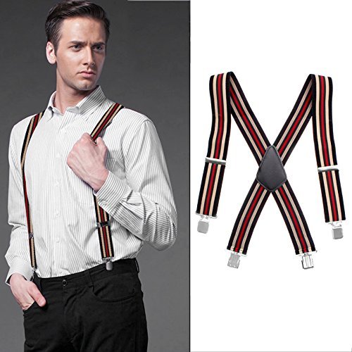 (BlingKingdom)/Accessories/Suspenders Cummerbunds/DIRECT FROM USA/Mens Suspenders X Back 2" Wide Adjustable Solid Straight Suspenders Heavy Duty with Strong Dura...
