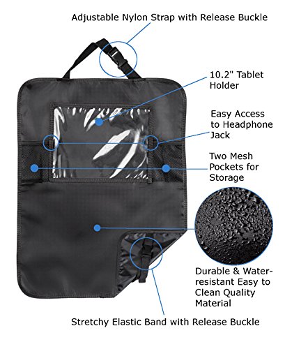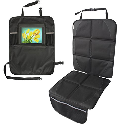 Car Seat Protector and Kick Mat Set with clear Holder for Touch Screen iPad and Tablets - Universal Fit Protector Child Booster Seat, Kick Protection for...