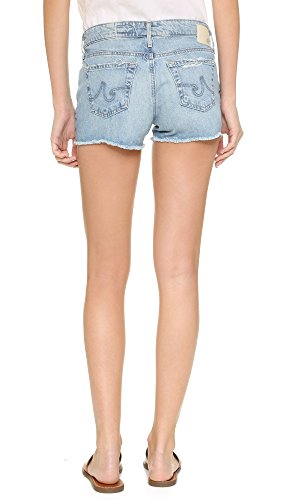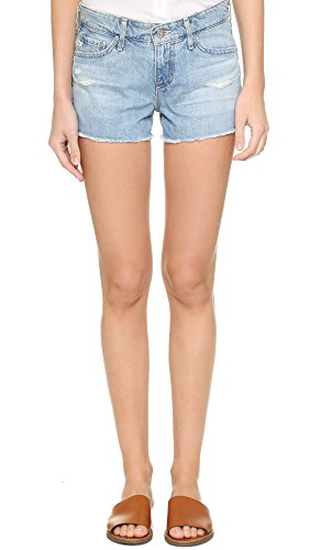 Small, shredded holes and whiskering lend a well-worn feel to these AG cutoff shorts. 5-pocket styling. Button closure and zip fly.