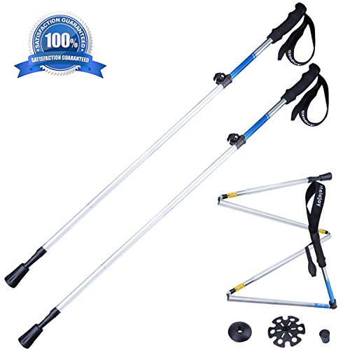 [1 Pair] Trekking Poles, Angozo Foldable Collapsible, Ultralight, Height Adjustable Hiking Poles [1 Year Warranty]