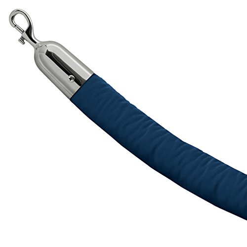 Lavi Industries Velvet Rope with Snap Hooks, 4 feet long, Cambridge Blue and Polished Stainless Steel