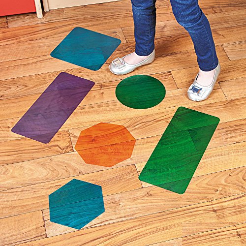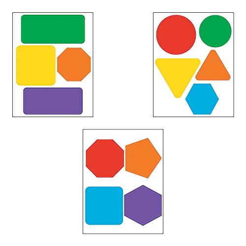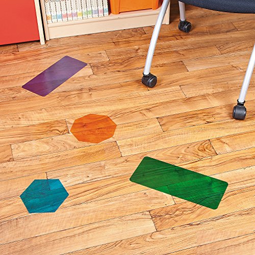 Add some flair to your floor and create your own educational games and activities. Each 17" x 22" sheet includes various geometric shapes including triangles, circles, rectangles, squares, octagons and hexagons. Fun for color and shape recognition. Decals cling to most smooth surfaces and remove easily after use. Vinyl. (13 pcs. per unit) 6 1/2" - 13" x 5 1/2" - 8" "Floor clings are a colorful and fun way to help with your classroom management. Use them to make directional pathways for students, use a shape for each student to stand on while waiting in line or use on cupboards for labeling!"Feature