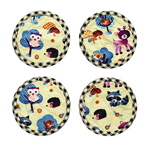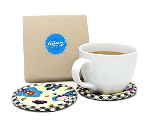 - Unique Coasters Design - It is round coasters. Size is 4 Inch Diameter. Soft fabric and cute cartoon patterns on it. Drink coaster set of 4. Comes in a beautiful box. Our Coaster have been designed for superior durability, and will not break if dropped, or scratch surfaces the way hard coasters do.