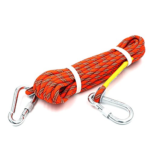Features: - Reinforced polyester rope, durable and long lasting - Strong abrasive resistance, easy to clean - Two hooks in the both end of the rope to satisfy your activities - Ideal for mountaineering, rock climbing and other outdoor activities Specifications: - Material: Polyester reinforcing wires - Rope diameter: 10mm - Weight: 79g/meter - Construction: 23 Inner Cores - Max tensile force: 18KN - Color: Blue or Orange Package included: 1 x Climbing rope 2 x Hook 1 x portable bag 0