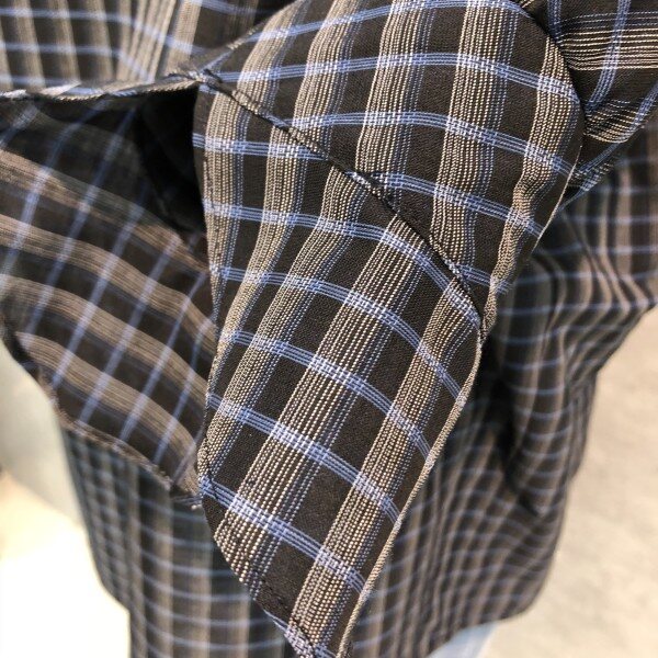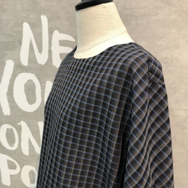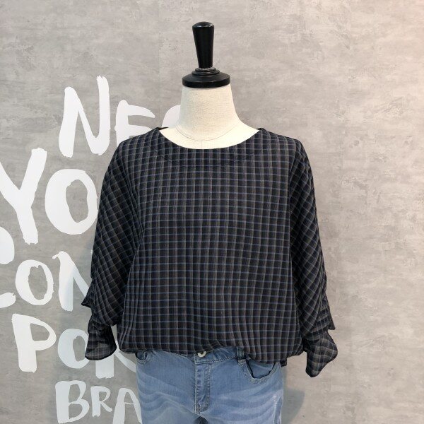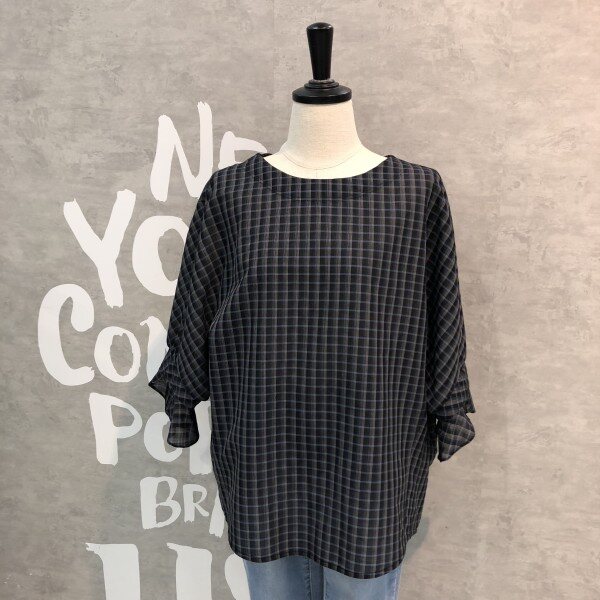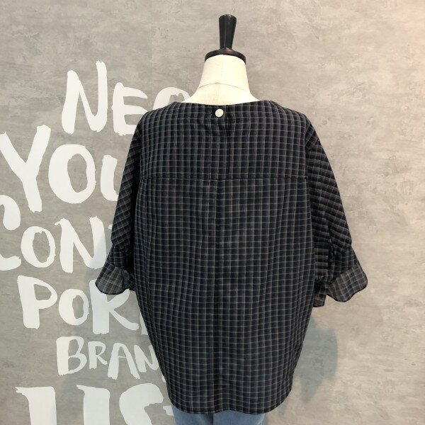 소프트하게 표현된 체크패턴이 은은하게 고급스러운 루즈한핏의 소매러플포인트 블라우스입니다