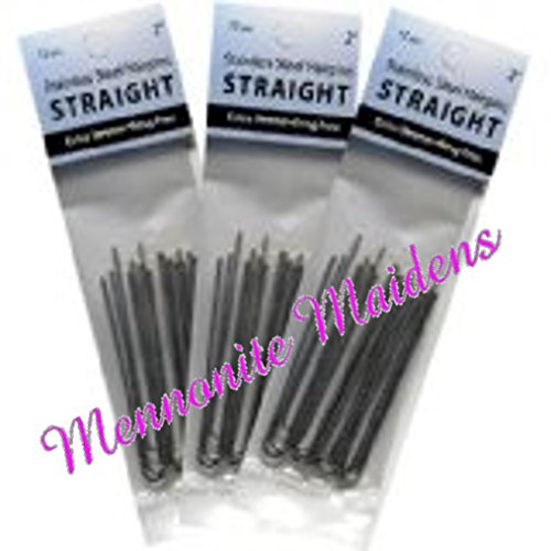 Mennonite Maidens Fishers Wire 3 Pack 2 Straight Stainless Steel Snagless Amish Made Hair Pins
