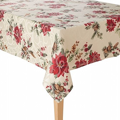 - Pretty juniper berry pattern with poinsettia accents on a creamy ivory background
