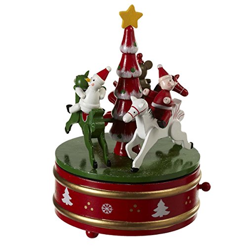 - Wind-up mechanism at bottom to play melodic tune from song 'Jingle Bells'; Toggle on side of carousel for easy playing and use