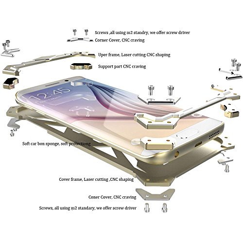 - Feature : TabPow Presents Brand New Warrior Series - Super High Quality Metallic Aluminum Case for Samsung Galaxy S6 / CNC Laser Machine Cutting for Cool Special Heroic Legends Cutout and Camera / Button Cutouts / Soft Inner Leather Sponge Material Prevents any scratches on the phone / Multi-Layer Shockproof Design safely protects your Galaxy S6 from receiving any types of shock, bumps, or damage / Made of Lightweight US Aircraft Grade Aluminum Alloy; package includes installation screws & screw driver