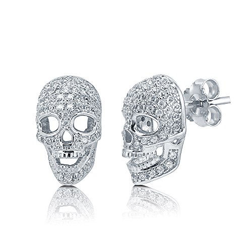 -. Title : BERRICLE Sterling Silver Cubic Zirconia CZ Skull Bones Fashion Statement Stud Earrings