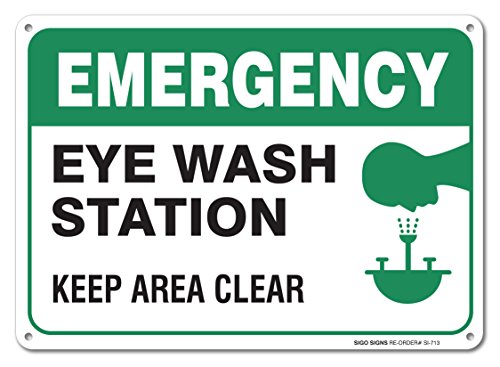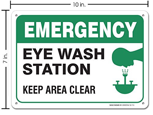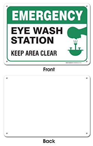 Emergency Eye Wash Station Sign, Large 10x7" Aluminum, For Indoor or Outdoor Use - By SIGO SIGNS