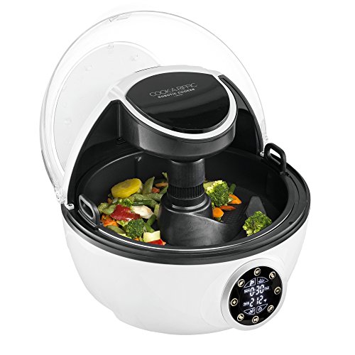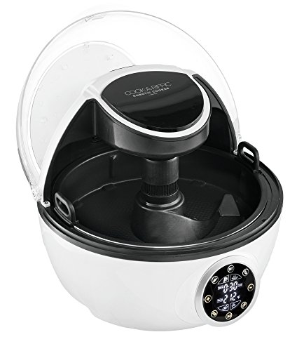10 IN 1 Grill, bake, steam, saute, pan fry, stew, stir fry, slow cook, roast or make sauces - all a la robot. Breakthrough technology now allows you to step away from virtually any food and return for delicious results. EXCLUSIVE HANDS FREE STIRRER Features top mounted self-operating stirrer for perfect stir fry and saute, Asian dishes, risotto, stews, fries, soup, scrambled eggs and more. Leading engineers have eliminated the need for mixing and stirring, first on the market revolution for home cooks! You've got your hands free for anything but that dirty spoon. Auto circulating system seamlessly moves air throughout the device for an even, perfect cook. Enjoy the moist interiors and crisp exteriors of top notch fries, steak, chicken and casseroles. Meals are now finished quicker and lower calorie - no cooking oil/fat needed. Breeze through cooking with a preprogrammed control panel. Set your dish and go; it's that simple! The Cook Robot features an easy read display for time and temperature, clear view lid, and dishwasher safe auto stir spatulas.Feature