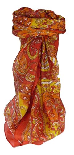 Our Traditional Range is inspired by the floral and paisley patterns that incorporate the vibrant colours of India. The Traditional Range captures the essence of Indian culture by preserving the intricate designs and vibrant colours of past dynasties. This modern interpretation of traditional favourites, still produced by hand, maintain both quality and design. Our Traditional Range brings you a fine quality silk scarf representing all that is best in modern Indian textile design and at a very affordable price. This absolutely charming 100% silk scarf typically measures 100cm x 100cm. Each scarf has a luxurious feel. Made from very finely spun cultivated mulberry silk the finish is lighter, softer, rounder, and smoother than raw silk harvested from the wild. Soft and warm to wear, its authentic style is unusual and stunning. This versatile fashion accessory will complement all formal or casual wear. "Momme" (mm) is a measure of the weight of silk fabric. Using the scale 1 momme to 3.75 grams per square meter, our Traditional Range silk scarves typically use silk between 6 and 10 momme, our Classic Range between 8 and 25 momme, and our Heritage Range scarves above 25 momme. Your scarf is supplied with FREE gift-wrap in attractive ivory tissue and presentational frosted bag along with a FREE message service. Warm to wear and easy care. Your scarf or stole should not require frequent cleaning. If you wish to freshen your item, dry clean it or gently hand wash the whole garment in cool soapy water. Never rub the fibres and always dry flat away from direct heat. When required use a cool iron. 0 |