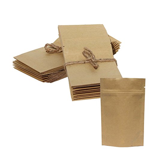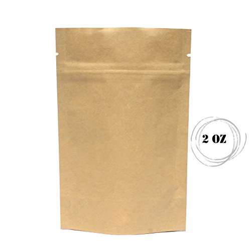 AwePackage 2 oz Kraft Paper Stand up Zipper Pouch Bags(100 Pack) - FDA and USDA compliant Heavy 6 Mil 4X6X2 Inch
