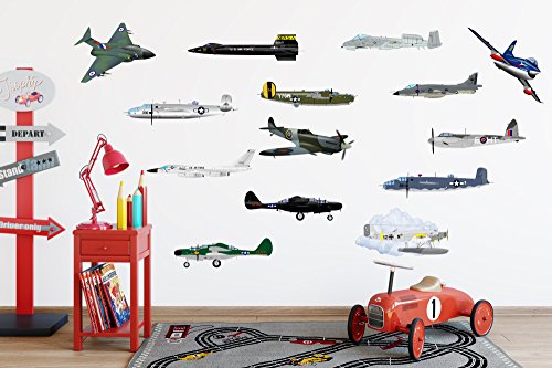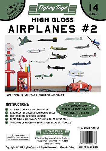 14 Military Fighter & Army Airplanes - Collection #2 Peel & Stick Vinyl Wall Decals / Stickers - Nursery, Boys, or Kids Room by Flyboy Toys