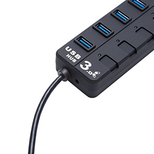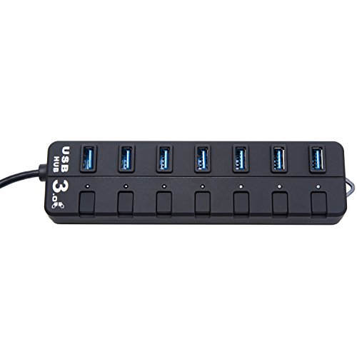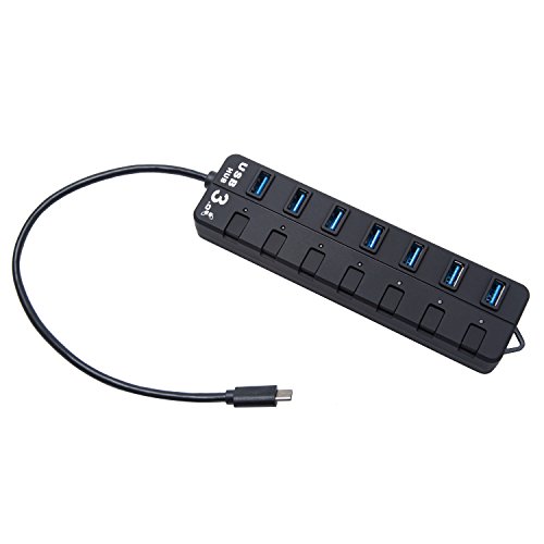 High Speed USB 3.1 Type-C to 7 Port USB 3.0 Hub Adapter Connector with Individual Switchs for PC Laptop Tablet Macbook (Black)