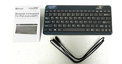 vitalASC Ultra Slim Bluetooth Keyboard for iPad, iPhone, Android, PC, Compact Rechargeable, Black (KB10KA-B)