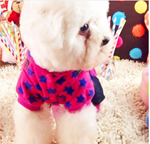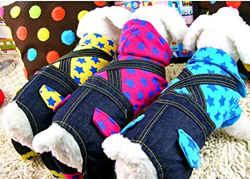 -. Binding : Misc. -. Brand : Woo Woo Pets -. Feature : Bust(inch)--XS:15 S:17 M:18 L:21 Length(inch)--XS:10 S:12 M:15 L:16 / Soft material to keep your doggie warm and fashionable in cold weather / Made of high quality cotton,durable and comfortable / With a pet costume in unique shape, dogs will be ready for parades, parties, or just having fun / Suggest handwashing -. Label : Woo Woo Pets -. Manufacturer : Woo Woo Pets -. PackageQuantity : 1 -. ProductGroup : Pet Products -. ProductTypeName : PET_SUPPLIES -. Publisher : Woo Woo Pets -. Studio : Woo Woo Pets -. Title : Woo Woo Pets Cute Five-pointed Stars Suspenders Coat Dog Apparel