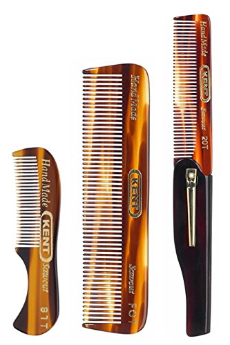 Kent Gentlemen's Comb Set: 81T Beard and Moustache Comb, FOT Pocket Comb, and 20T Folding Pocket Comb with Clip