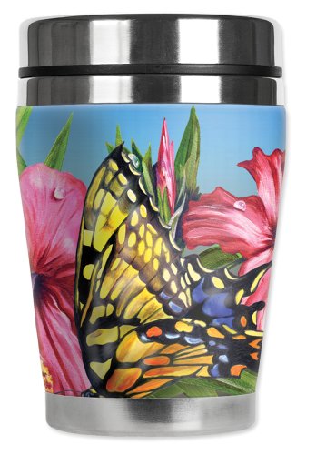 12 Oz Stainless Steel Travel Mug covered with water-proof, neoprene wetsuit material.