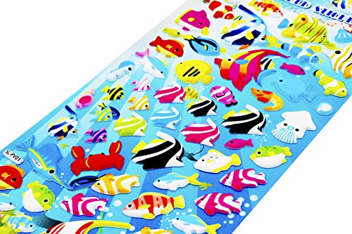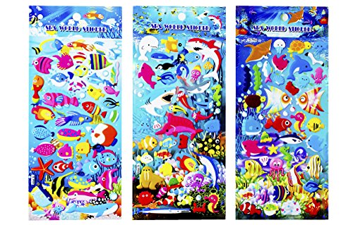 OCEAN ANIMAL STICKERS: Include the stickers of Angelfish, Sharks, Starfish, Hippocampus, octopus, sea turtle, conch, whale etc..