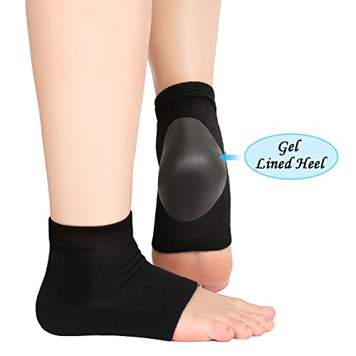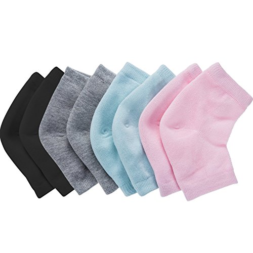Material: Special active gel enclosed in a ventilate and elastic fabric brace, breathable and stretchy fabric material allows for wear in comfort. 4 Pairs of moisturizing heel socks: Come in 4 different pure colors, each color 1 pair; Without any pattern, unisex, suitable for both men and women. Toe-less design: Open toe gel socks to keep feet from getting too hot, they work well even when you rest or sleep. Function: Built-in moisturizing gel in heel part of socks, can soften and moisturize dry hard cracked skins, then enhance skin smoothness. Usage: Use together with body lotion or foot cream to create better moisture effect (foot cream not included), you can wear these socks at least 3 times a week. Socks care: 1. Avoid dry cleaning, no bleach and do not iron. 2. Avoid direct sunlight, it is better natural air drying. 3. After dry, please put it flat on collection and do not knead it into a ball. 4. Please do not wash the socks too hard, and we recommend that you'd better not wash them too frequently to extend their lifespan. Notice: 1. The size of the socks may run smaller than normal socks, and a little tight when wear it for better moisturizing. 2. Please make sure that the time is in the range of 20 - 40 minutes every time when you wear. Specifications: Material: gel, soft breathable fabric Size: one size fits most Color: pink, turquoise, grey and black Package includes: 4 Pairs of moisturizing heel socks 0