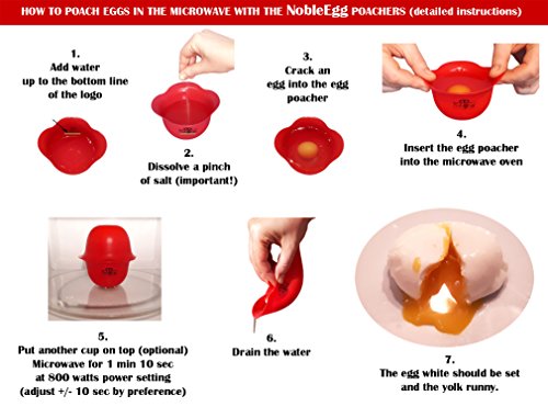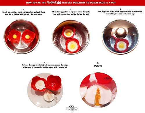 SILICONE EGG POACHER CUPS - for poaching eggs in the microwave oven, in a pot or a saucepan, pressure cooker, with or without cooking oil. NobleEgg silicone poached egg cups are sturdy enough to sit on a flat surface or in water whilst containing eggs without tilting or becoming deformed. Heat resistant: -40F~450F (-40C~230C)